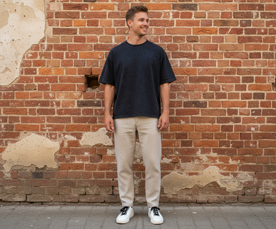 Мужская футболка высокого качества из премиального плотного хлопка с добавлением вискозы.
